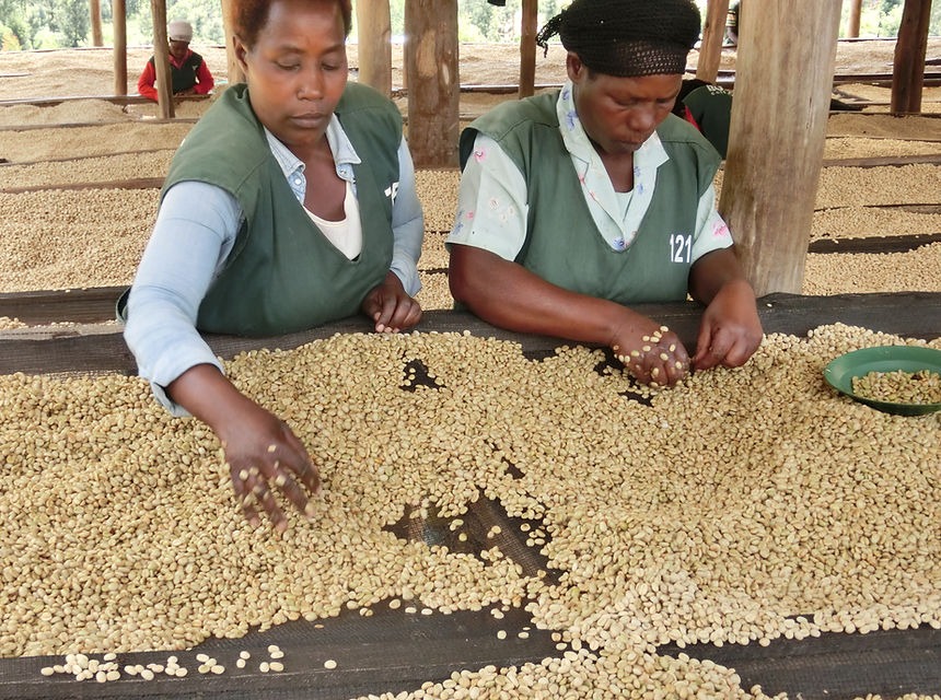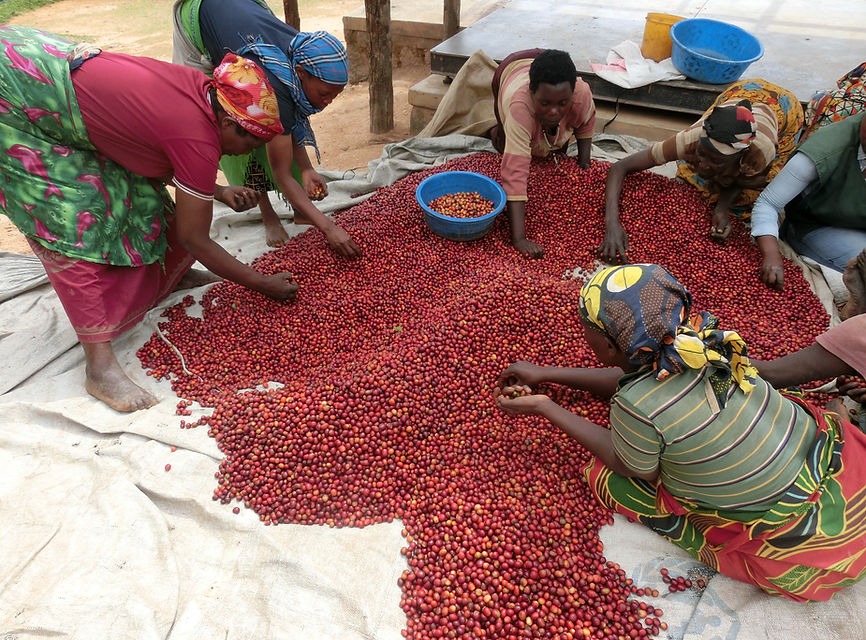 ルワンダのwashing stationでは、豆の選別を行うのは大半が女性です。